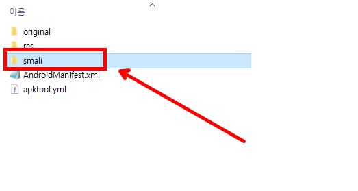 5. EditsecureBank 폴더를 들어가보시면 저희가 Jadx로 봤던 소스코드 파일들이 그대로 들어있는 것을 확인하실 수 있습니다. 리패키징에서 수정하는 코드는 smail 을 통해 수정을 해야합니다. smail 폴더로 들어가보죠!