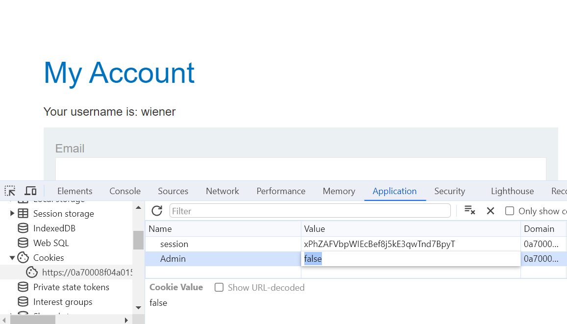 이런식으로 cookie 에 Admin 을 식별하는것에 대한 정보가 남아있는데 이것을 true 로 바꾸면 어드민 페이지가 접속해지는 방식으로 예를 들어볼수 있을것 같습니다.