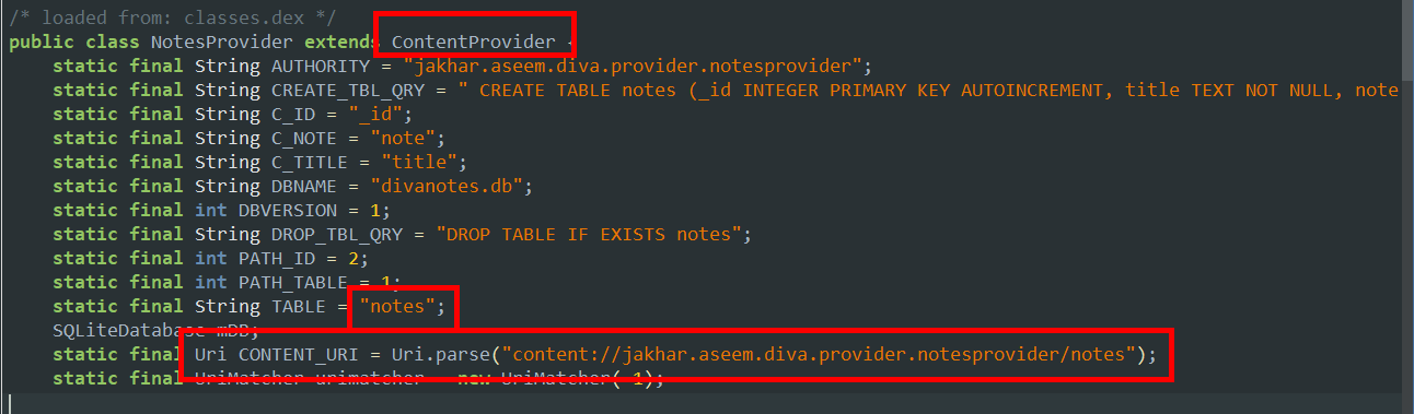 android:authorities="jakhar.aseem.diva.provider.notesprovider"