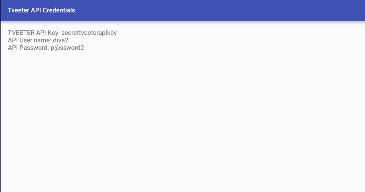 6. 그러자 성공적으로 APICredsActivity가 열린것을 확인하실 수 있습니다.