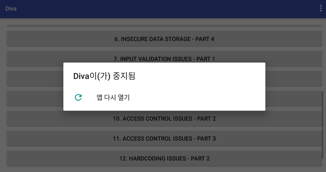 '모바일 앱해킹(Android) > Android DIVA' 카테고리의 다른 글