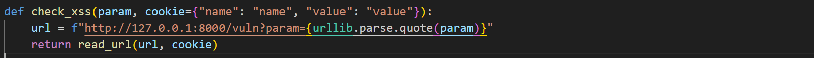 6. check_xss 함수를 보니 저희가 삽입한 param값과 사용자의 cookie 값을 가져오는가 봅니다.